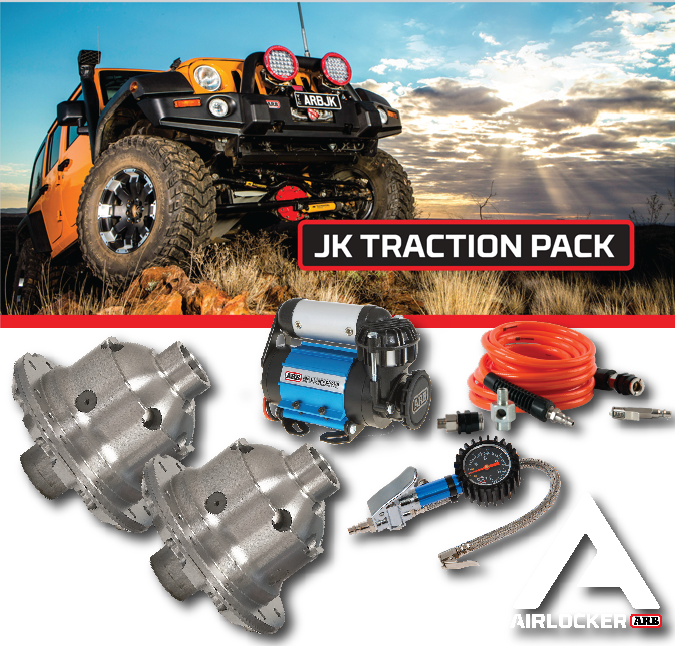 The Traction Pack is a unique option for the Jeep JK owner who wants to achieve true four wheel drive. The package includes two ARB Air Lockers (front and rear axle), a compressor and accessories for tire inflation. Savings over the individual purchases of these items is $299.00!