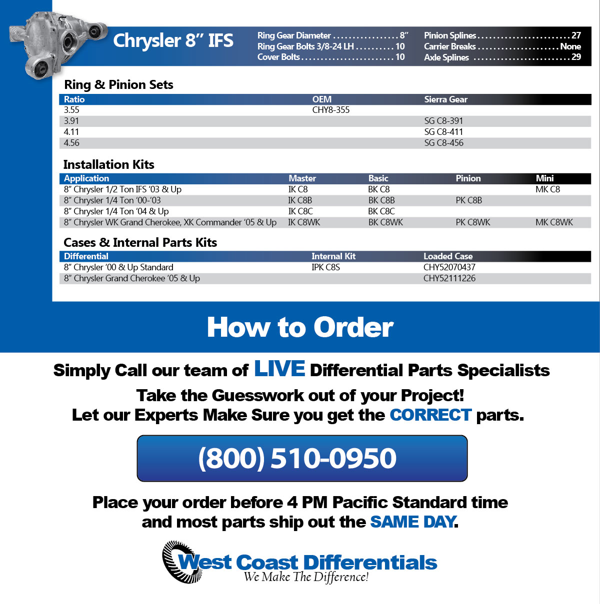West Coast Differentials has been distributing quality differential and axle parts since 1982. We believe that our exceptional customer service and product knowledge is what sets us apart from the competition. Give us a try, we think you'll be glad you did!