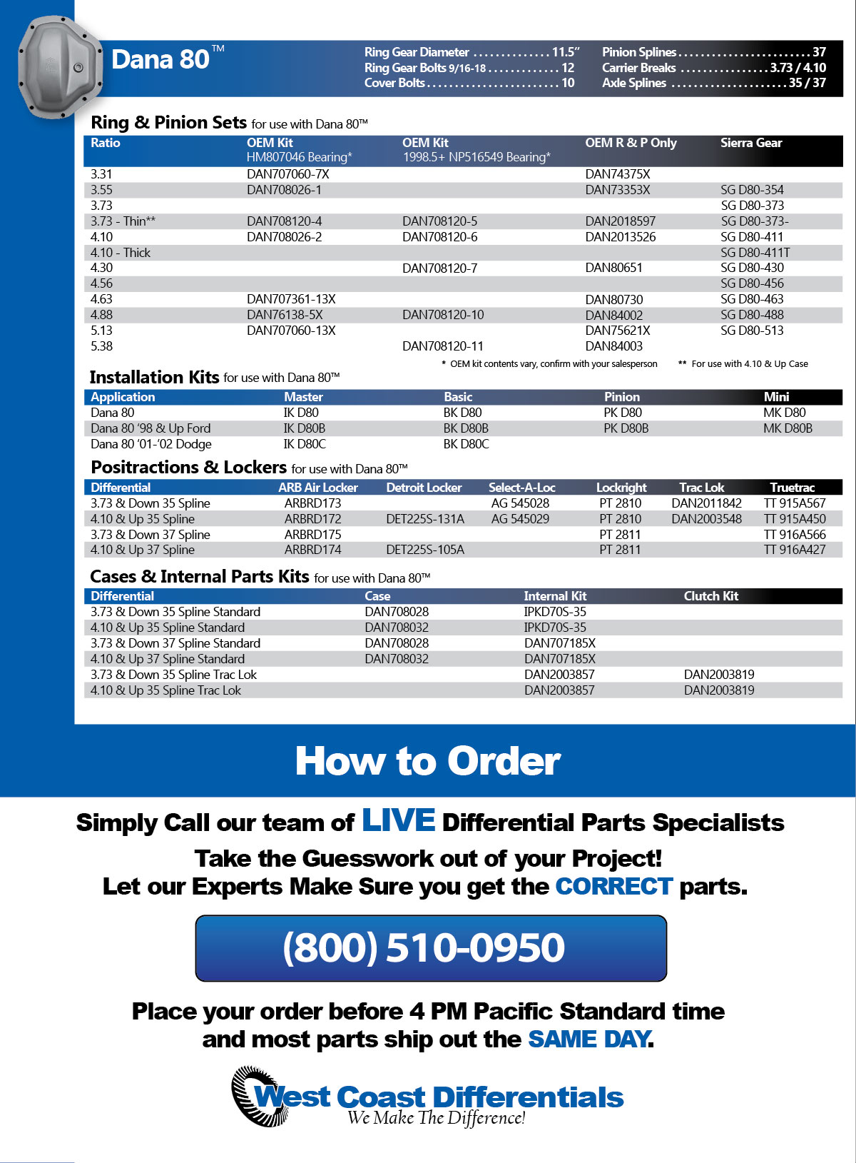 Dana 80 Axle - Differential, Ring and Pinion, Gear & Axle Parts Catalog