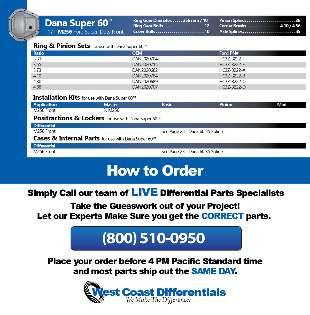 For the fastest and most accurate service, call our Differential Parts Experts for immediate assistance. We are available to help Monday thru Friday from 8 AM to 5 PM Pacific Standard Time, and most orders placed by 4 PM ship out the SAME DAY!
