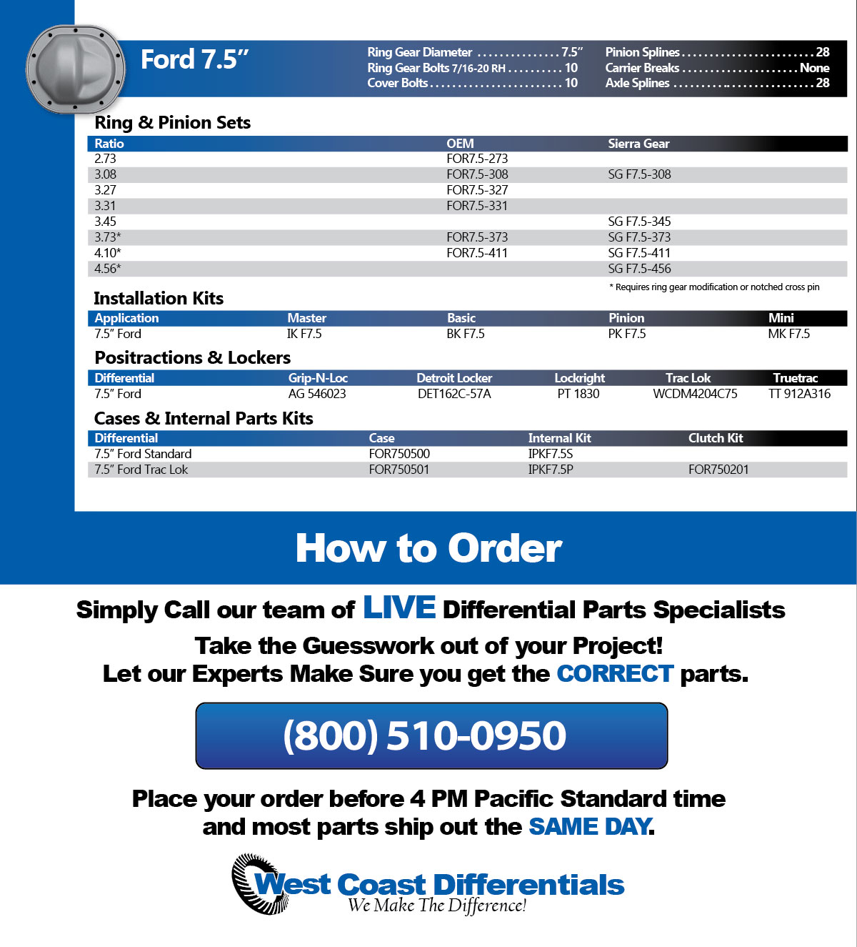 Ford 7.5 Axle - Differential, Ring and Pinion, Gear & Axle Parts Catalog