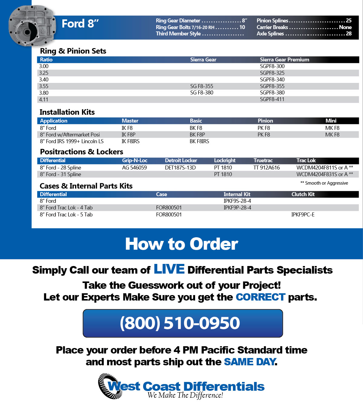 Ford 8 Inch Axle - Differential, Ring and Pinion, Gear & Axle Parts Catalog