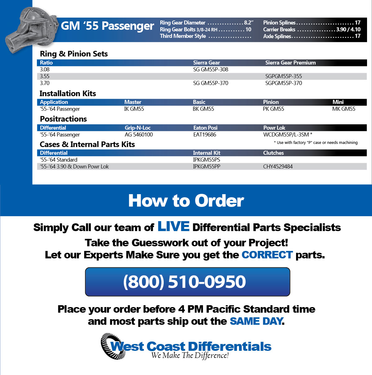 GM 55 Passenger Axle - Differential, Ring and Pinion, Gear & Axle Parts Catalog
