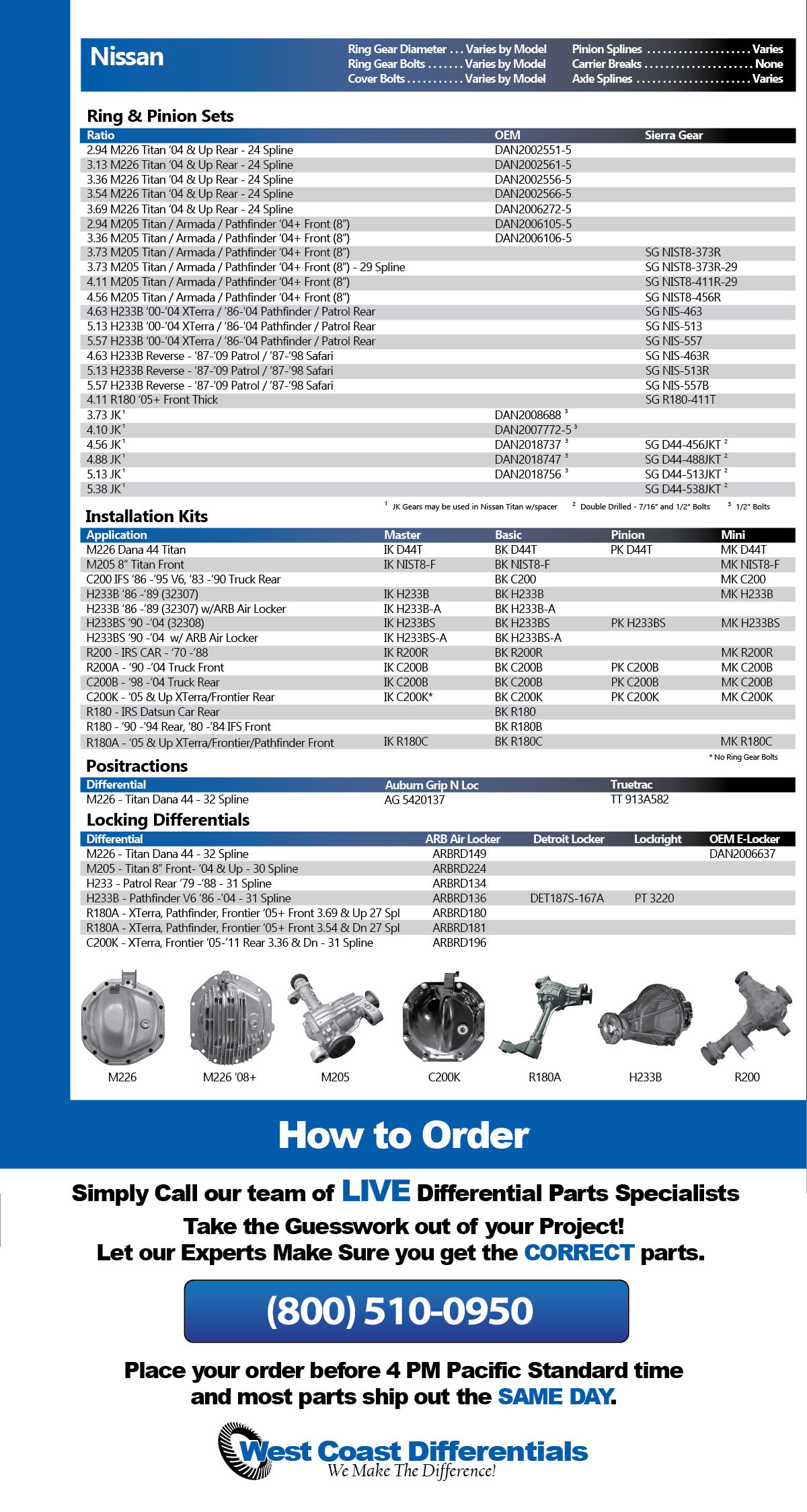Nissan Front & Rear Axle - Differential, Ring and Pinion, Gear & Axle Parts Catalog